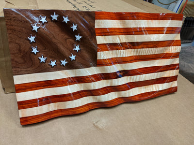 Order the 13 Stars Betsy Ross Wooden Wavy Flag today.