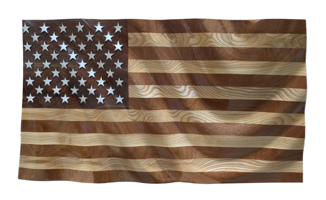 You’ll love the rich texture of the grain in these unique, one of a kind, Wooden American Waving Flags by Rush Woodworks.